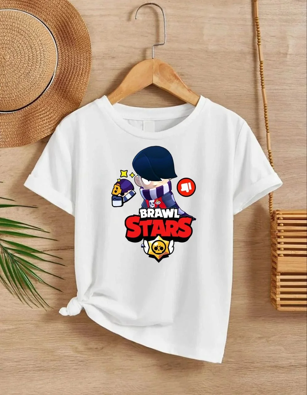 Unisex Bisiklet Yaka Kısa Kol Baskılı Çocuk T-Shirt – Beyaz
