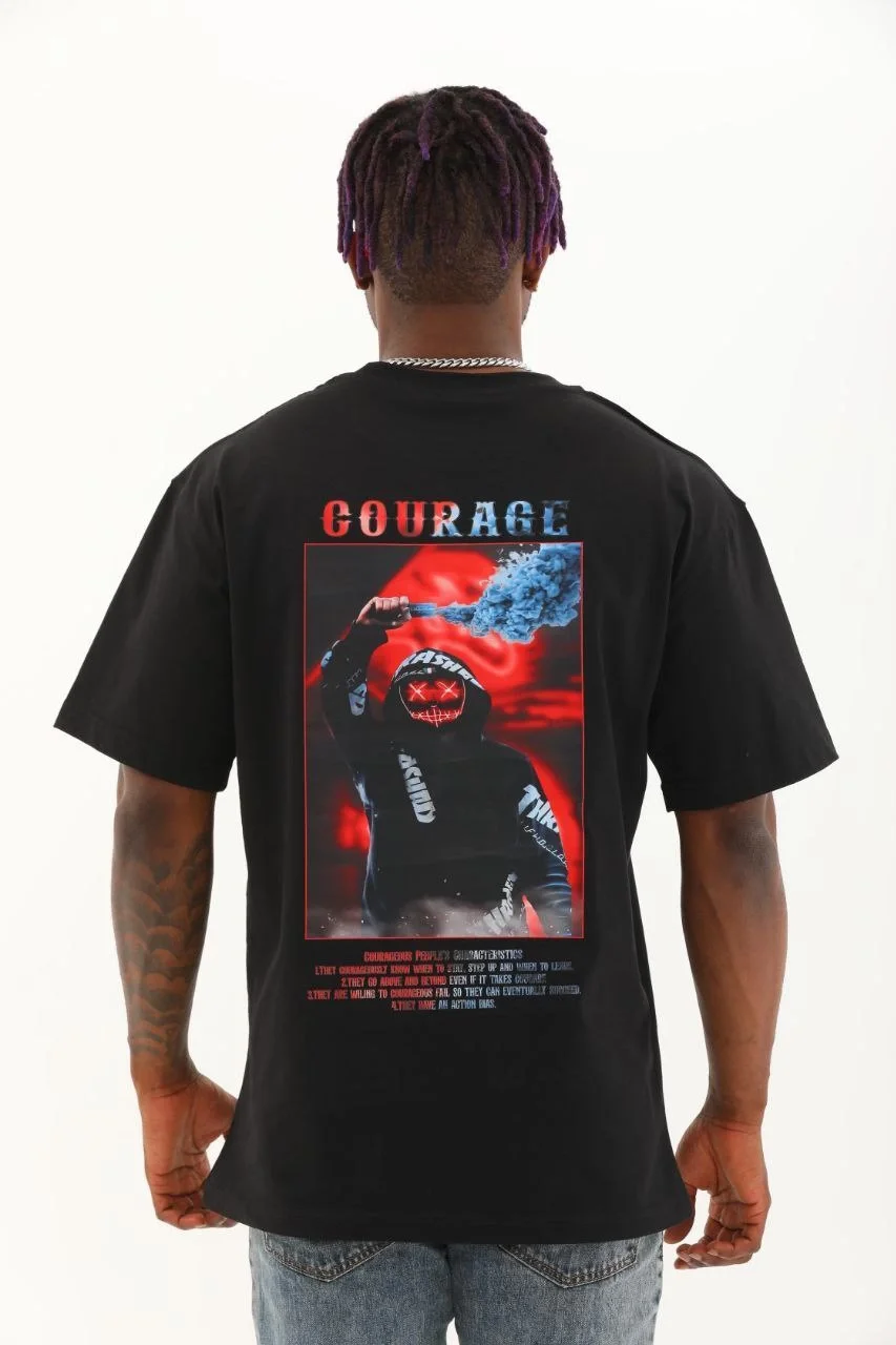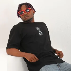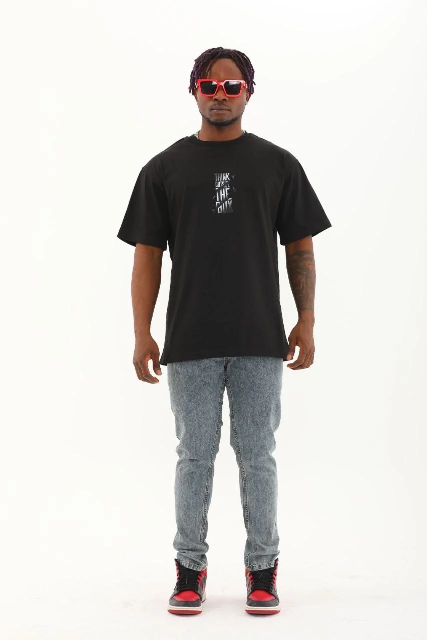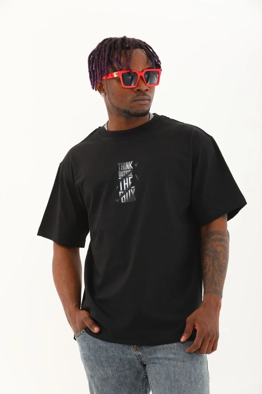 Unisex Oversize Baskılı Bisiklet Yaka T-Shirt – Siyah