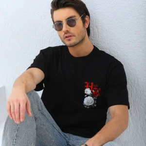 Unisex Oversize Baskılı Bisiklet Yaka T-Shirt – Siyah