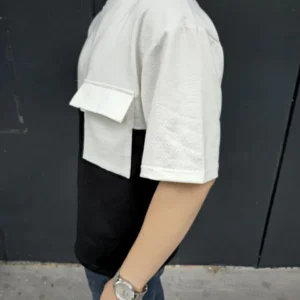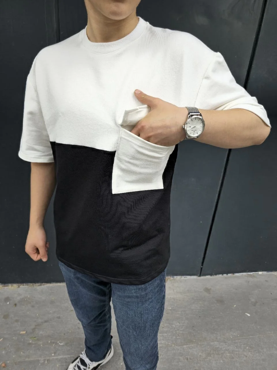 Unisex Torba Cep Detaylı Parçalı T-Shirt – Siyah