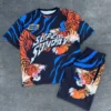 Unisex Yarım Fermuarlı Baskılı Oversize T-Shirt – Siyah